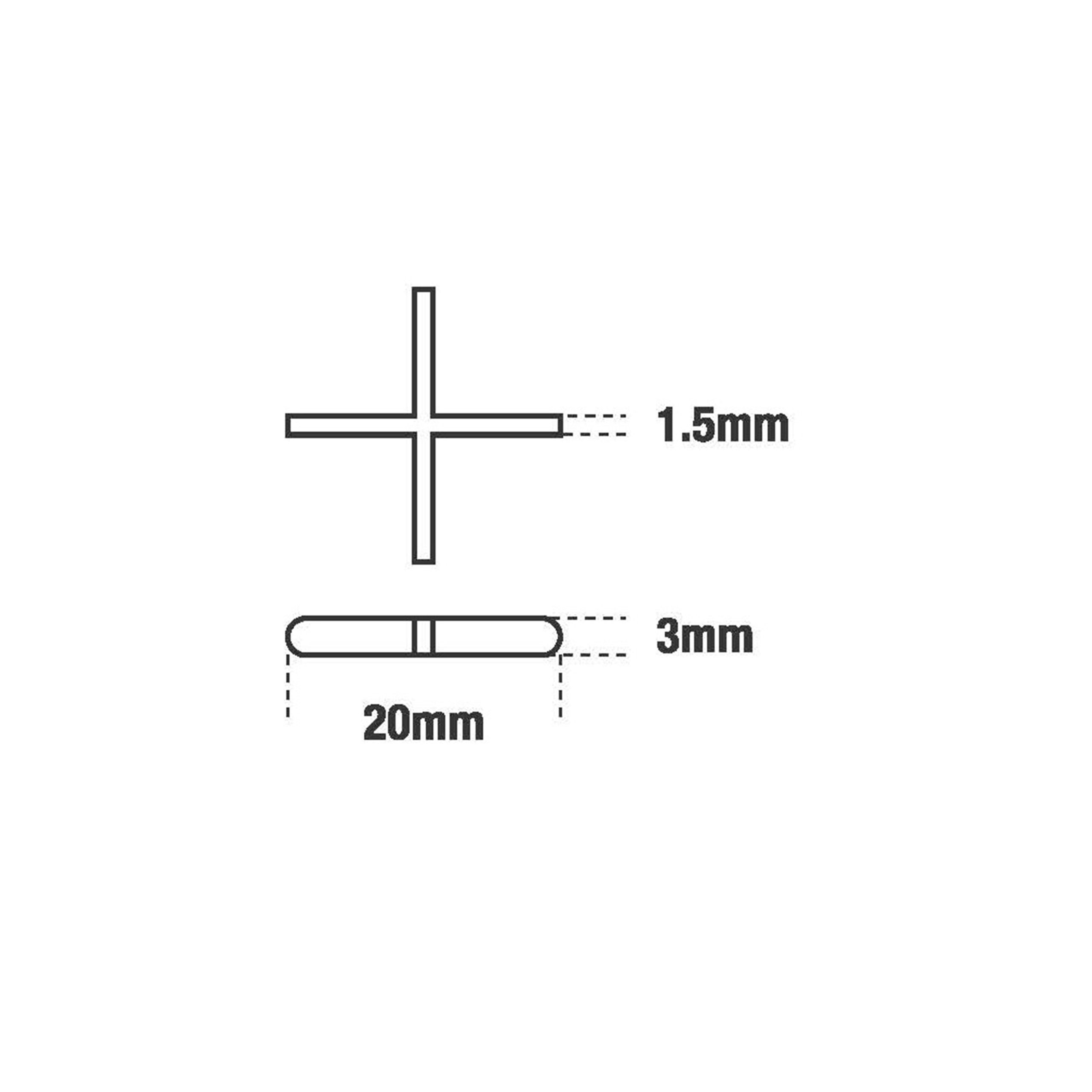 1.5mm cross type tile spacer. For straight and diagonal laying of tiles.