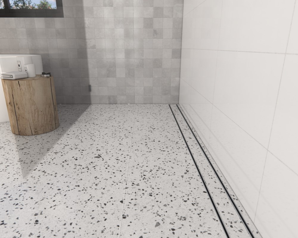 Hayman Tile in Drain Kit 100mm x 3metre – 21mm Brushed Silver
