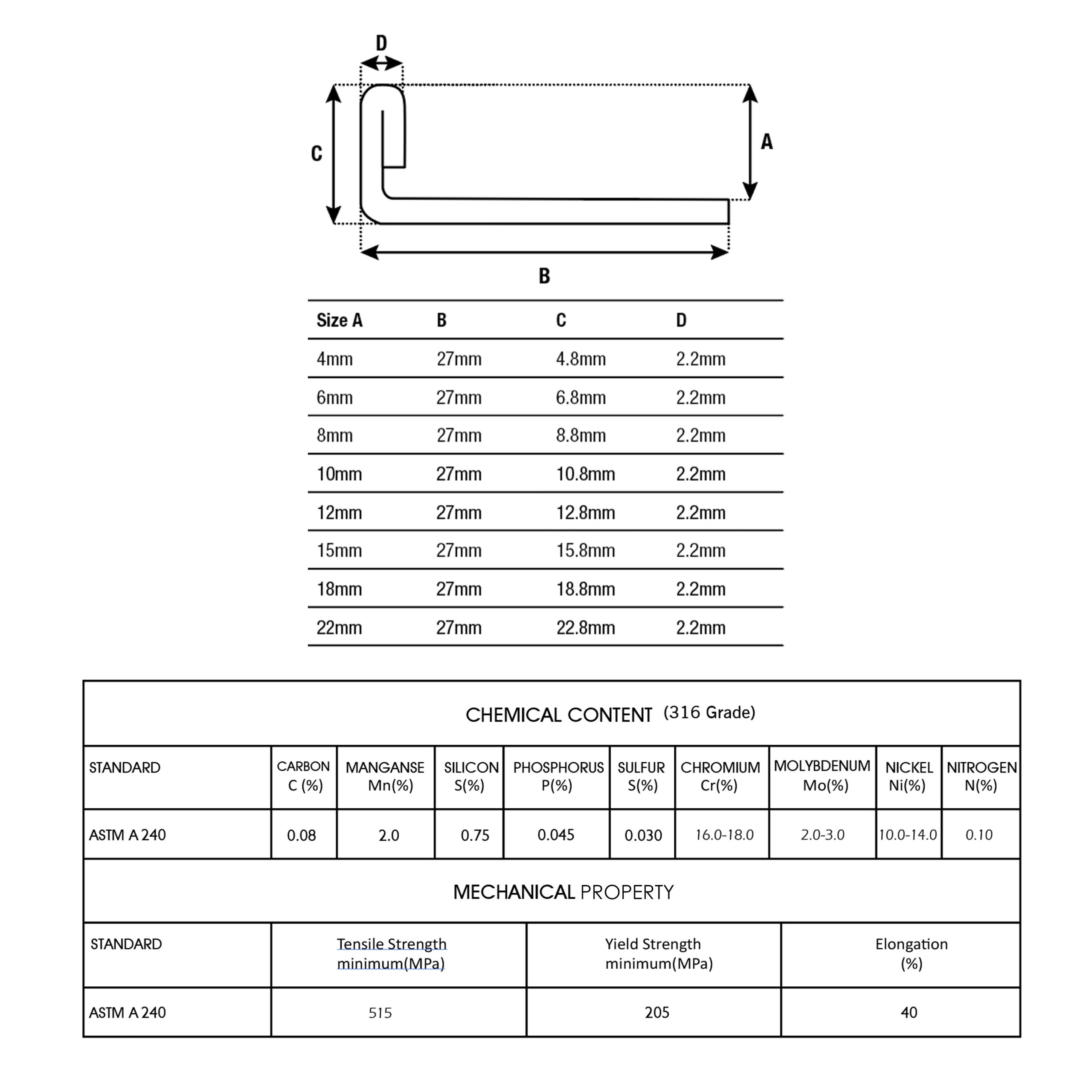 Used as decorative finish for stairs, external corners (either horizonal or vertical), transition between carpet and tiles or as a finishing trim. Available in either 304 grade or 316 marine grade stainless steel.