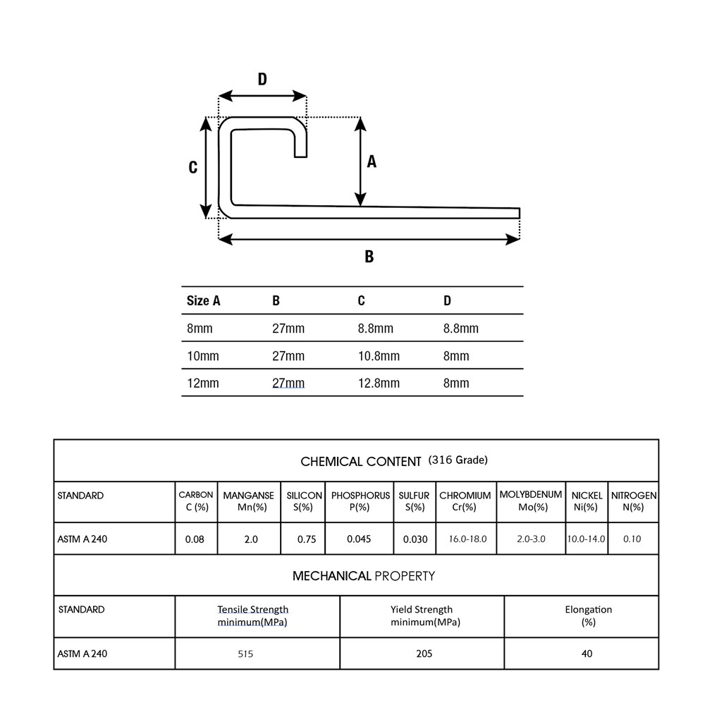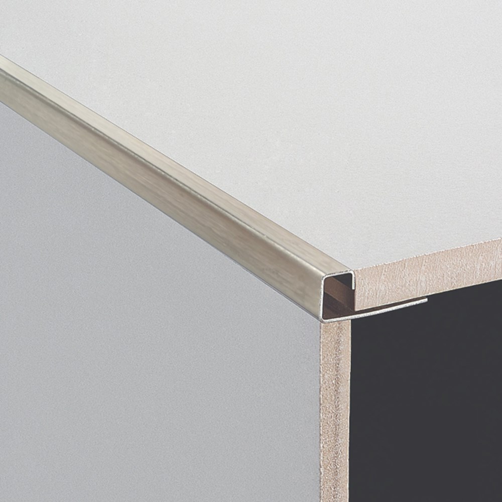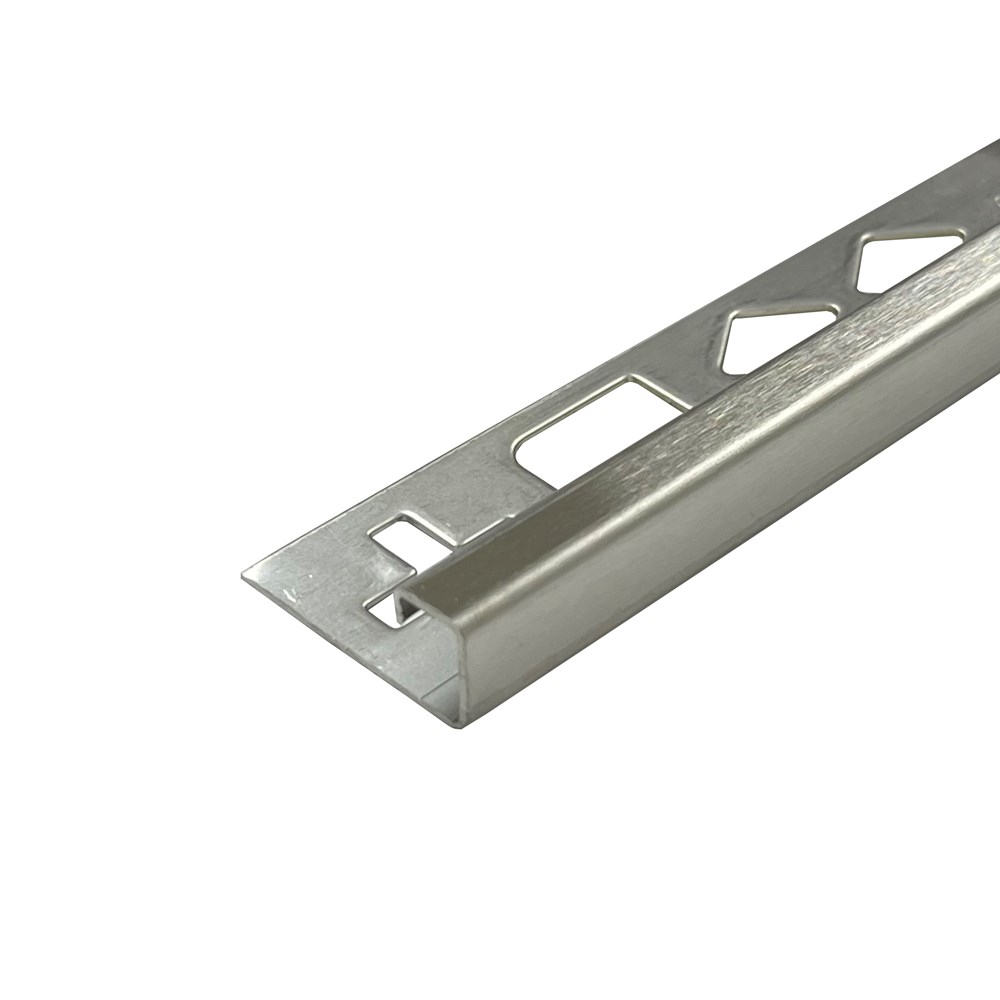 Brushed finish stainless steel square edge available in 3 metre lengths. Creates an elegant decorative finish for: stairs, external corners both horizontal and vertical, transition between carpet and tile and finishing trim on a wall.